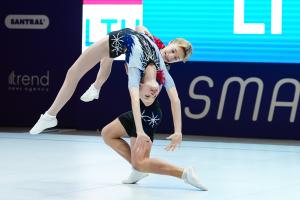 In Tumbling Russia lead the way, with the legend and defending European Champion Anna Korobeynikova and the Vice-European junior Champion Vadim Afanasyev. Korobeynikova scored 69.000, 6 tenths more than Great Britain’s Megan Kealy and teammate Viktoria Danilenko. Afanasyev dominated the men’s competition, taking a 2 point (!) lead over his nearest rival Maksim Shlyakin. 2016 European junior Champion Rasmus Steffensen qualified in third place just ahead of crowd favourite and Baku boy Mikhail Malkin.